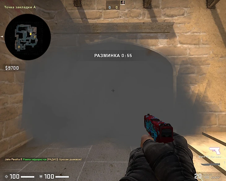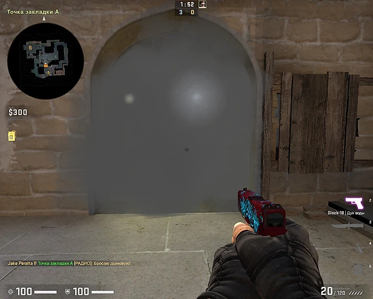 Смок реагирует на свет, а цвет дыма у КТ и Т разный. А главное изменение – отверстия. Они появляются, если пострелять в дым или взорвать в нем гранату.