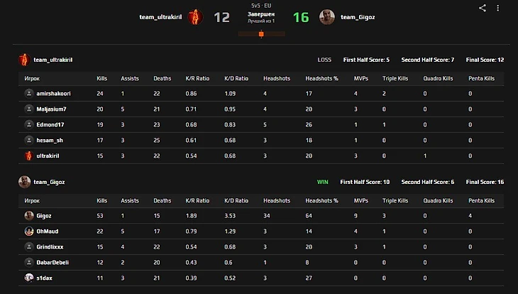 Кенни зашел на аккаунт с первым уровнем на Faceit, где играют самые неопытные игроки. Его команда выиграла со счетом 16-12, француз сделал 53 фрага – почти по 2 за раунд. Четырежды он заканчивал с эйсом, еще трижды с трипл-киллом.