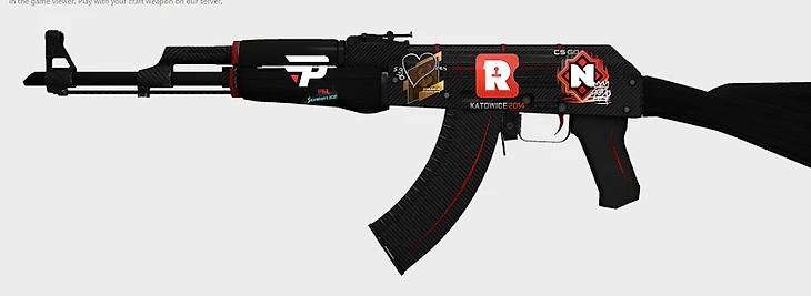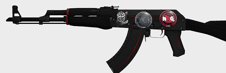 Наклейки команд и игроков давно стали мемами. На логотипах есть уже половина букв алфавита, а в автографах постоянно встречаются интересные слова, с помощью которых можно собирать не самые приличные фразы. Клеить стикеры лучше на однотонные скины, например AK-47 «Черный сланец» или «Красная линия».
