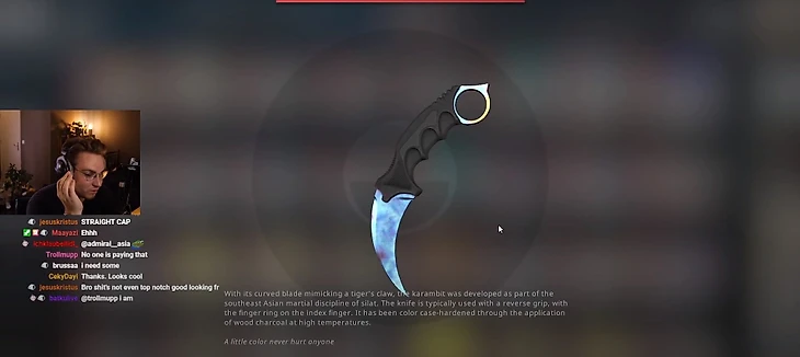Какой скин самый дорогой в CS:GO? Кто-то скажет про сувенирный AWP «История о драконе» за несколько миллионов рублей, кто-то сразу назовет бабочку «Волны Изумруд» или «Волны Сапфир». Дорого стоит и редчайшая M4A4 «Вой», которую никак невозможно получить. Но все они намного дешевле самого дорогого скина в игре – ножа Керамбит «Поверхностная закалка».