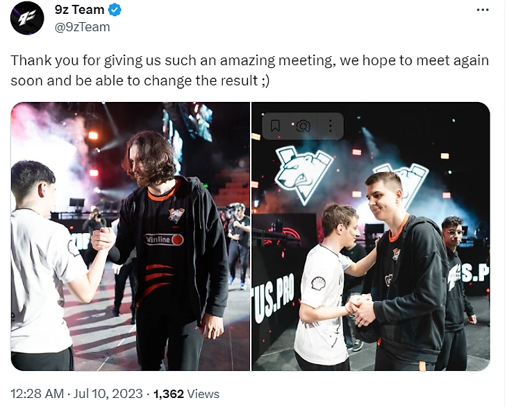 В итоге все посты Virtus.prо и 9z можно назвать лишь разогревом перед игрой и уважительным подкалыванием друг друга, так как после матча клубы обменялись любезностями и выразили благодарность за игру: