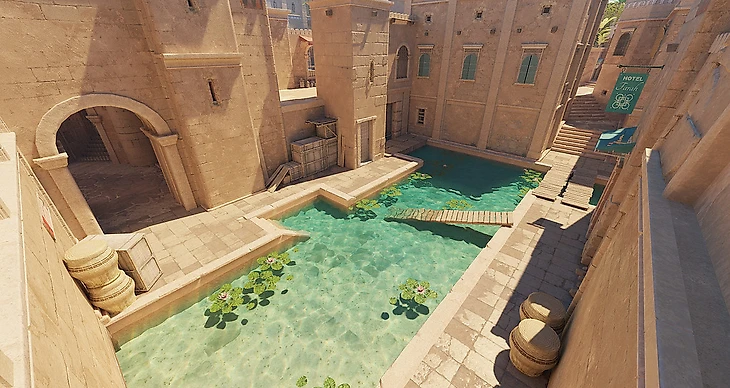 Ситуация с Анубисом такая же, как и с Эншентом в КС 2. Повторим кратко главную мысль: Анубис не изменился геймплейно, на карте не появились новые проходы или элементы дизайна, влияющие на игру. Но при этом новый движок позволил сильно поработать над визуальной составляющей Anubis, в том числе воде, которой на карте достаточное количество.