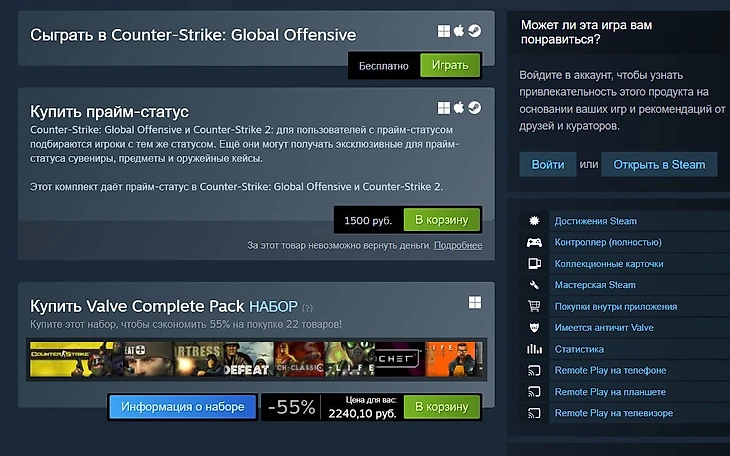 Некоторые игроки на фейсите даже не задумывались о покупке прайм-аккаунта и играют с бесплатной версией CS:GO. Он покупается как отдельное DLC на странице игры в Steam, текущая стоимость – 1500 рублей. Раз у вас не было прайм-аккаунта, значит вы не играли в матчмейкинг – нужно будет пройти калибровку, которая займет минимум 5 дней, после чего ждать следующей волны или автоматической выдачи доступа к бете.