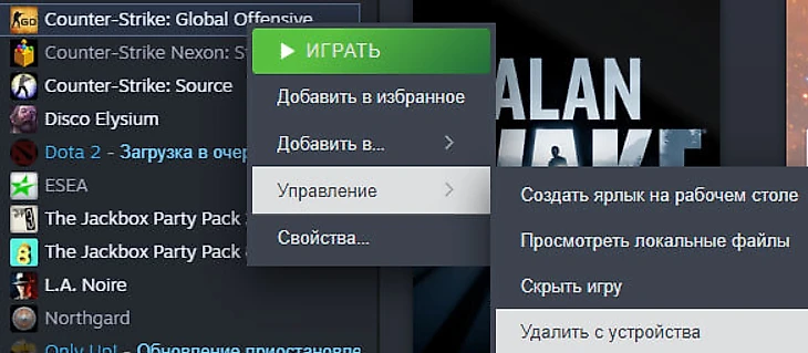 Отдельно удалить CS 2 не получится, поэтому для начала придется снести обе версии игры.