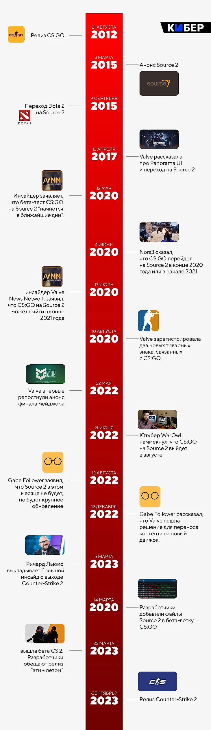 21 июня – ютубер WarOwl намекнул, что CS:GO на Source 2 выйдет в августе. «Я очень жду обновление Source в августе. Ой, я не должен был этого говорить»;