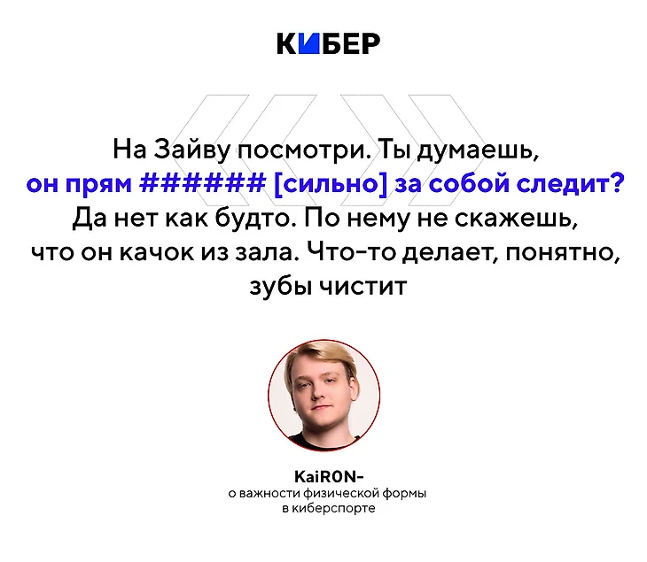 В физическом плане... Много людей не очень за собой следили и всегда хорошо играли. На Зайву посмотри. Ты думаешь, он прям ###### [сильно] за собой следит? Да нет. По нему не скажешь, что он прям качок из зала. Что-то делает, понятно, зубы чистит.