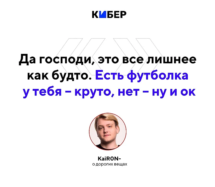 – Да не то что не люблю, мне как-то все равно. Окей, будет какая-то футболка. Да господи, это все лишнее как будто. Есть футболка у тебя – круто, нет – ну и ок.