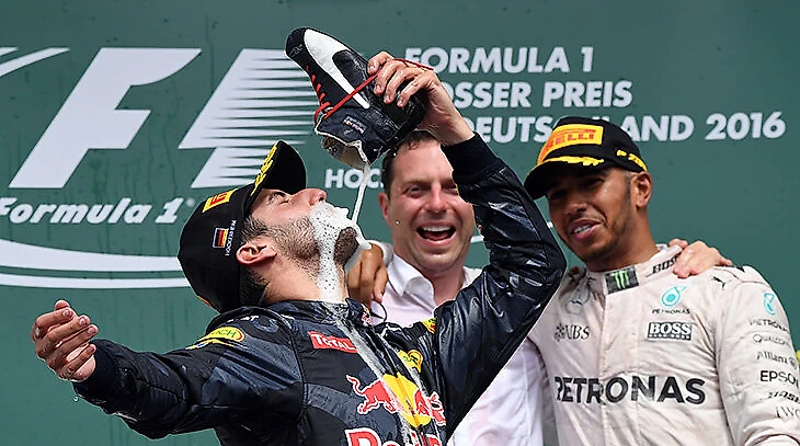 Риккардо не считает традицию противной: «Если шампанское холодное, то оно вкусное. Да, через теплый напиток вы можете прочувствовать запах пота. Но вот холодное шампанское убивает все мерзкие ароматы. Так что это вкусно».