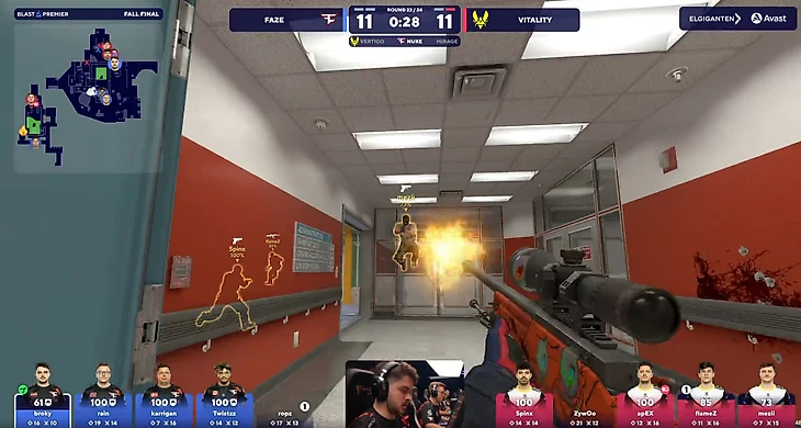 Вскоре Vitality возвращается на рампу, причем дым позволяет подойти максимально близко. Начинается выход, который принимает Ропз – он выключает Зайву, главную угрозу Vitality в раунде. Казалось бы, остались четыре соперника без брони, с дефолтными Глоками. Максимум кто-то поднимет «Калаш». Faze ну никак не могла проиграть. Но проиграла.