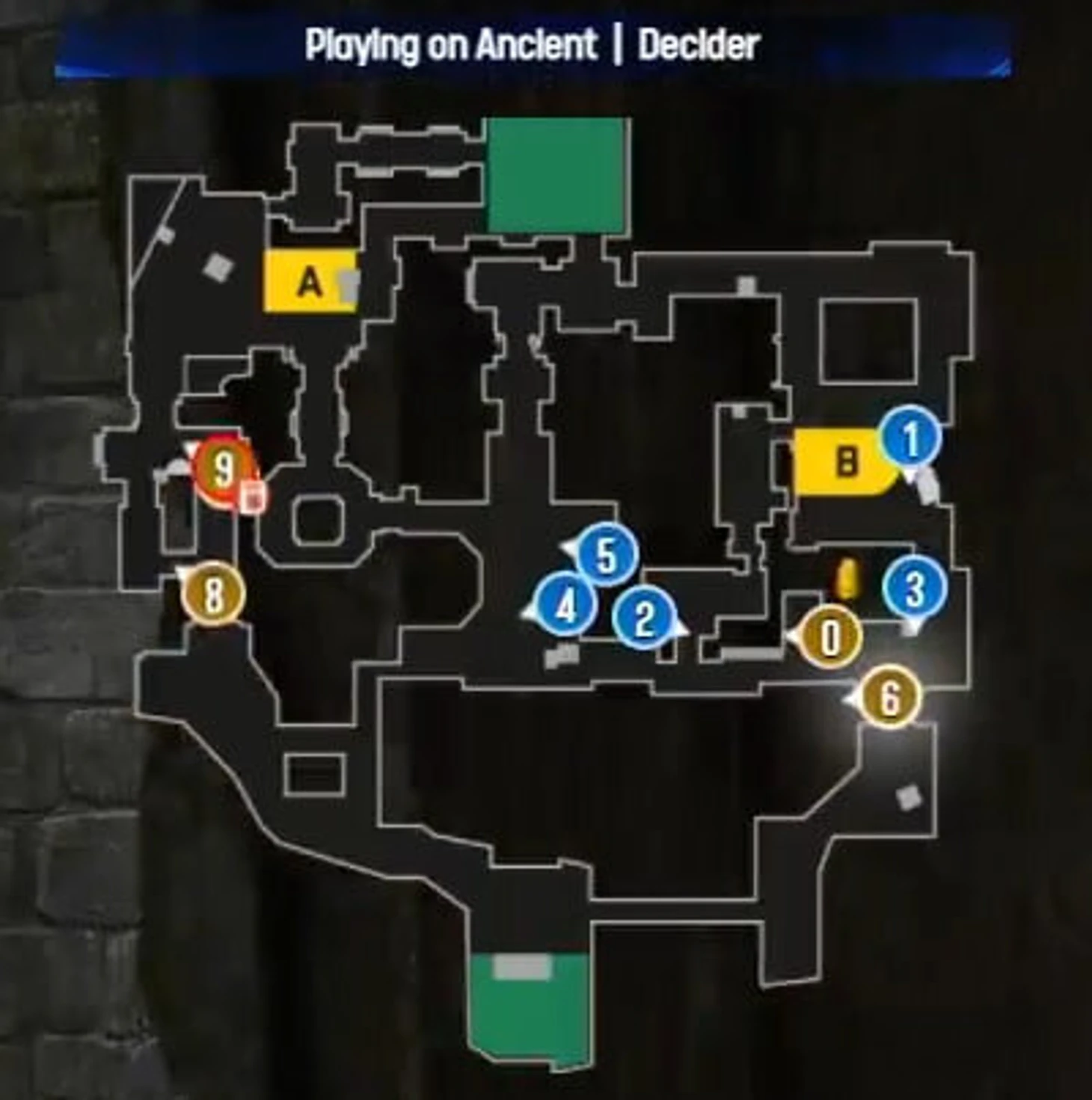 Вот пример нетипичных перестроений за КТ от Faze в матче против Ence на IEM Dallas. Полностью отдали точку А и пошли зажимать игроков, которые стоят под Б.