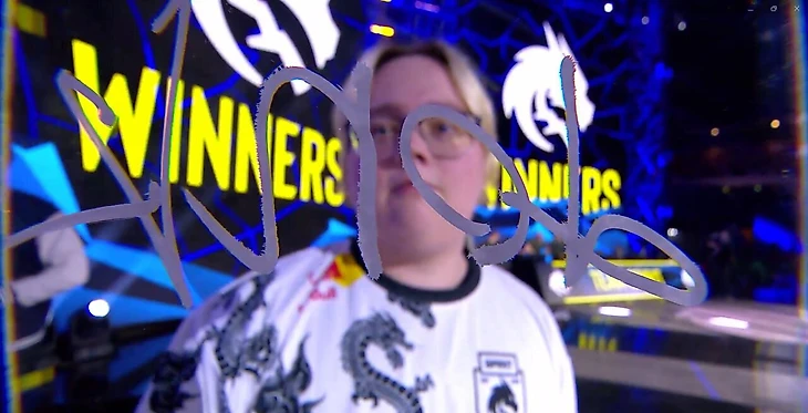 После победы Spirit на IEM Katowice 2024 Джеймс Бэнкс попросила Бориса повторить перформанс из Кельна. Получилось забавно: Magixx достаточно сильно пнул стул – и он отлетел прям в Зонтикса. «Не убивай своего тиммейта!» – сказал ведущий.