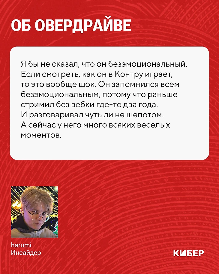 – Оверу, кстати, не нравится, когда его называют инсайдером, он считает себя больше скаутом, стримером. А ты сейчас можешь назвать себя инсайдером?