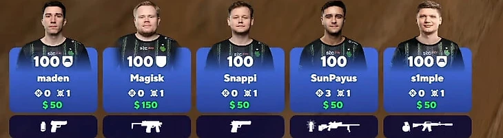 Главный снайпер Falcons – SunPayus, но Симпл не окончательно расстался с AWP. Когда есть возможность, он берет вторую снайперскую винтовку – так происходит за КТ. Костылев покупал AWP и за терров – например, когда на Mirage у него был лучший спавн для пика окна. За три карты Симпл дал 2 фрага с Авика, его коллега – 15.
