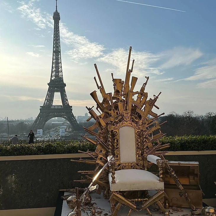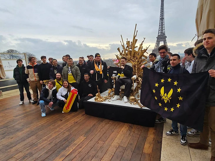 Неподалеку от Эйфелевой башни стоит стилизованный под «Игру престолов» золотой трон из оружия. Что вообще происходит? А это Vitality подготовила мероприятие, на котором объявила, что неоспоримо лучший каэсер мира Матье «Zywoo» Эрбо перезаключил контракт с клубом до конца 2026 года.