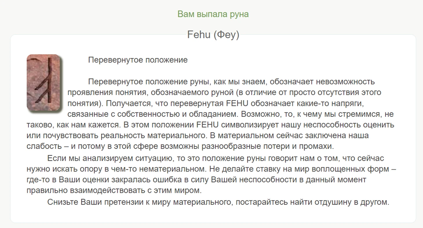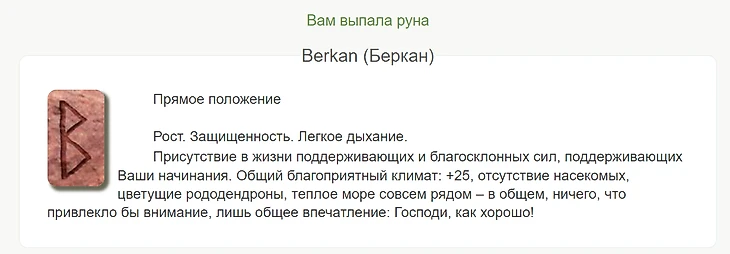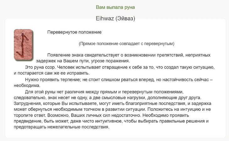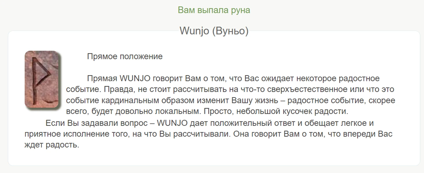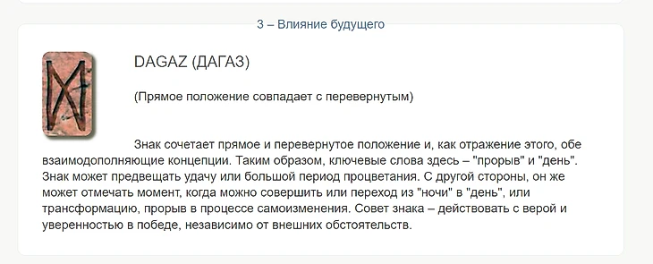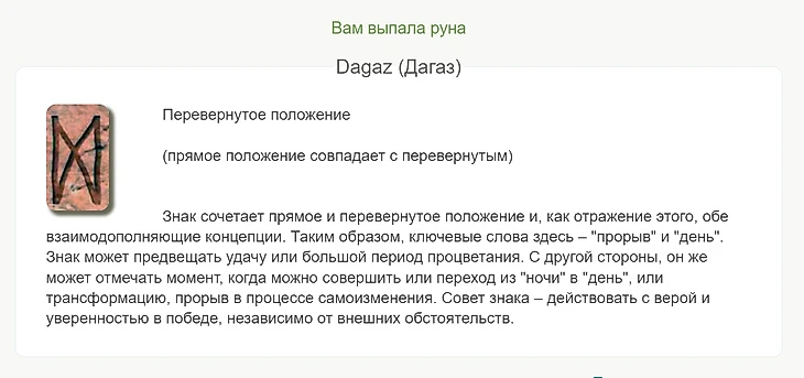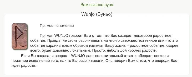 Таким получилось наше гадания: где-то ответы были более четкие, где-то руны и сами не понимали, чего ждать от ситуации. Надеюсь, это было забавно, и я правильно расшифровал все обозначения. Кстати, не стесняйтесь делать свои прогнозы в комментах – даже без рун. Посмотрим, у кого сошлось больше!