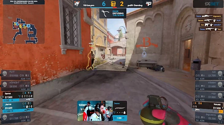 Тут совершенно не важно, какой план был у VP изначально: только лишь нанести урон экономике или сделать поздний ретейк. Факт в том, что байт с Джеймом сработал: Pain увидели фраг на другом конце карты (тем более от Джейма, который постоянно сейвит) и явно не думали, что их пойдут выбивать на таком позднем тайминге. Ну и байт подкрепился еще одной мелкой деталью: Джейм выкинул две флэшки на А после фрага, для пущей убедительности.