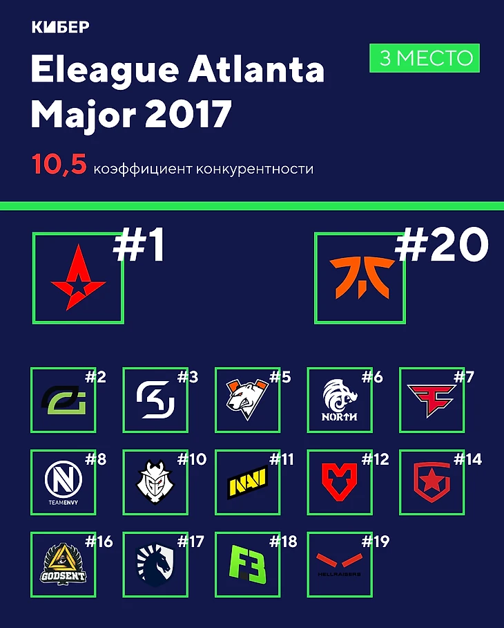 Между тем это самый конкурентный мейджор, если судить строго по местам в топе. Справедливости ради, тогда команд, способных играть на крупных чемпионатах, было в лучшем случае около 30.