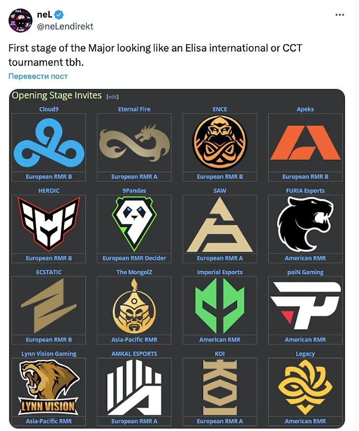 Мейджор в Копенгагене в самом разгаре. Но для человека, который мало следит за про-сценой, состав участников с самого начала мог казаться слабым. Где Astralis, Liquid, NIP, Fnatic? Даже французский инсайдер Nel удивился и сравнил первую стадию с турниром уровня CCT.