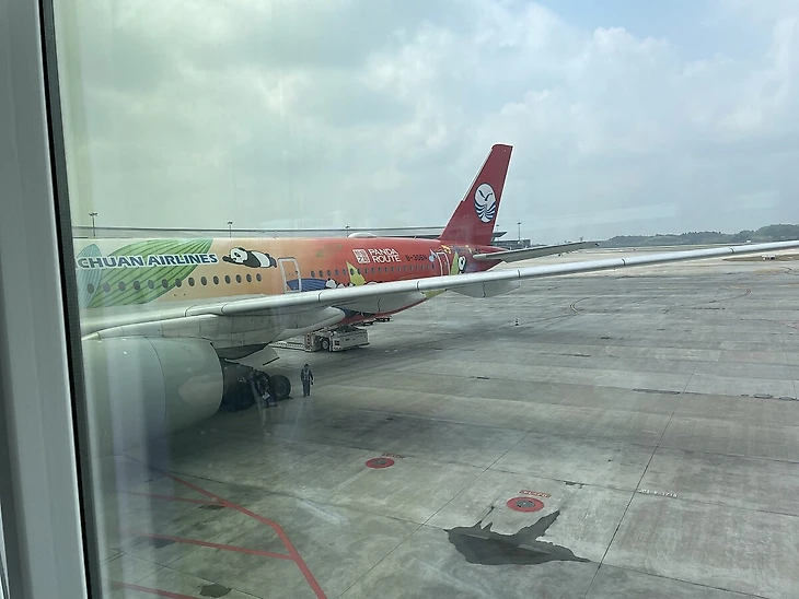 Поскольку спать в самолете я так и не научился, то первый день моего путешествия серьезно затянулся. Спасал лишь ноутбук с тремя сезонами «Теда Лассо» и двухразовое питание на международном рейсе (уже тогда я впервые заподозрил что-то неладное). Ну и сам самолет тоже был прекрасен – после трех лет путешествий на «Победе» пролететь на таком просторном борту было особенно приятно. Еще и с рисунками панд, которые вообще здесь повсюду – мы писали об этом в отдельном тексте.