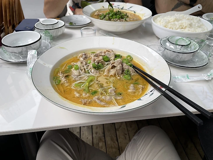 Не знаю, почему я не запомнил это еще с прошлого путешествия в Пекин, но в Китае нет понятия «не острая пища». Даже в самой мягкой еде будет полно специй – просто от нее ты хотя бы не будешь дышать огнем ближайший час. На фотографии снизу – вкусный, но нереально острый суп, благодаря которому у меня ночью случилось увлекательное рандеву с унитазом.