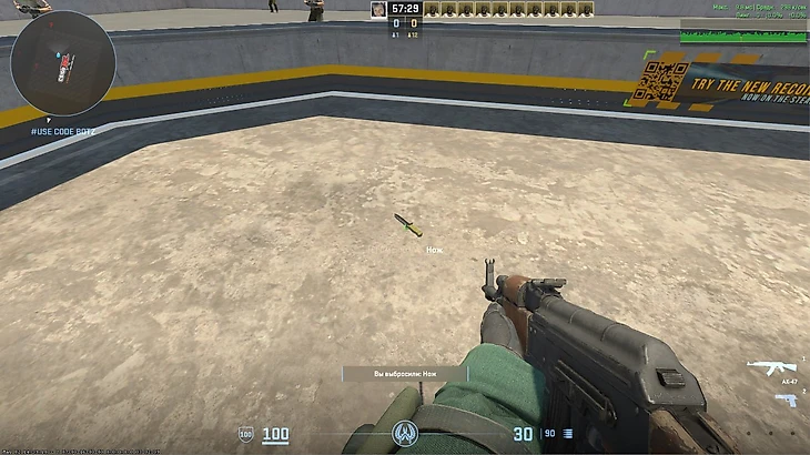 Слишком сложно? Если вы хотите просто осмотреть ножи, то можете скачать из мастерской AimBotz – самую популярную карту для тренировок. На ней можно выбрать любой из существующих ножей, достаточно лишь выбрать его в специальной панели.