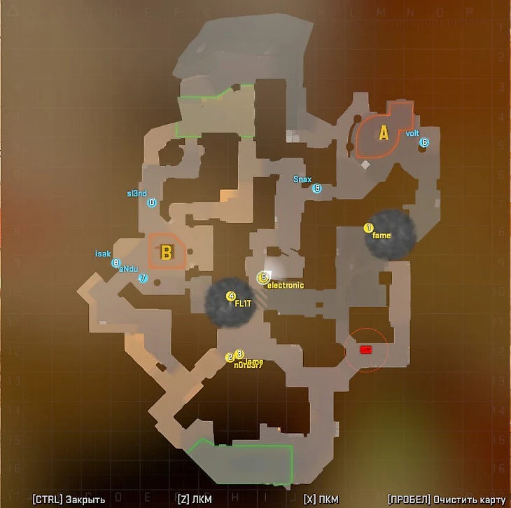 Вот, например, Денис весь раунд занимался раскидкой и не увидел ни одного соперника. Сначала он откинул свою раскидку на миду, а потом подобранные с тиммейтов гранаты на точку Б. И таких раундов у Электроника очень много.