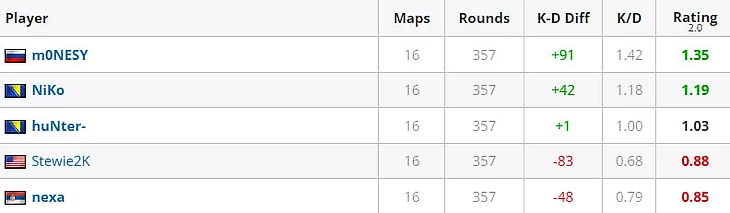 Это, в целом, типичная картина: Монеси – далеко впереди, позади него – Нико, гораздо дальше – Хантер; потом – два пацана с задней парты. Даже временный уход Хукси не повлиял на устоявшуюся структуру G2 – Stewie2k отыграл примерно на уровне датчанина.