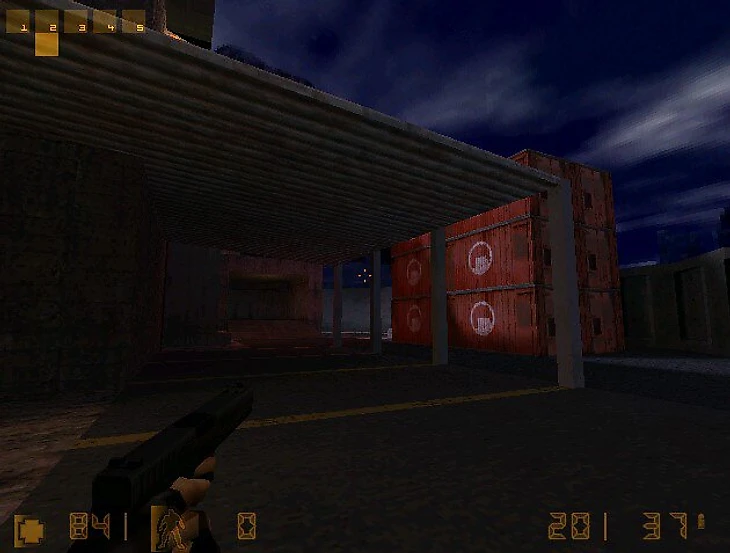 Ночная карта с большим складом по центру и пристройками к нему. Много открытых пространств и в то же время маленьких комнат и узких коридоров, в которых защите удобно прятаться. Тем более к заложникам вел всего один путь, что усложняло задачу атаке. Более того, заложники находились в одной комнате на верхнем этаже склада, откуда защита могла простреливать половину карты.