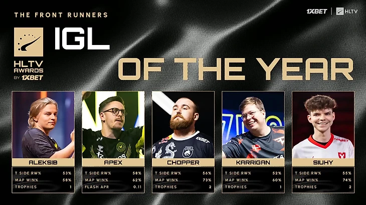 ● Пять кандидатов в номинации «Лучший капитан» по итогам полугодия: Aleksib, Apex, Chopper, Karrigan, Siuhy.