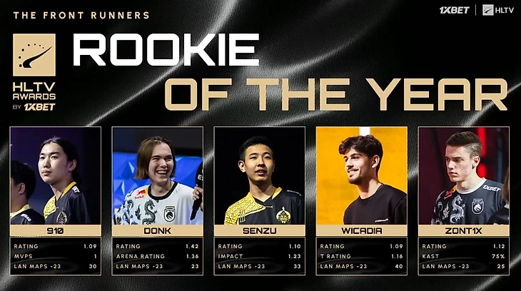 Чтобы попасть в номинацию «Открытие года», нужно меньше 30 карт против топ-20 команд на ланах, меньше пяти посещенных крупных турниров, отсутствие матчей в «Легендах» мейджора, меньше 20 недель в команде из топ-20. Возраст не важен. Donk сможет попасть в эту категорию.