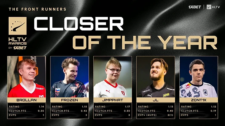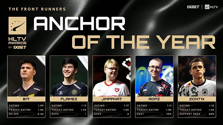 ● Пять кандидатов в номинации «Лучший опорник» по итогам полугодия: B1t, Flamez, Jimpphat, Ropz. Zont1x.