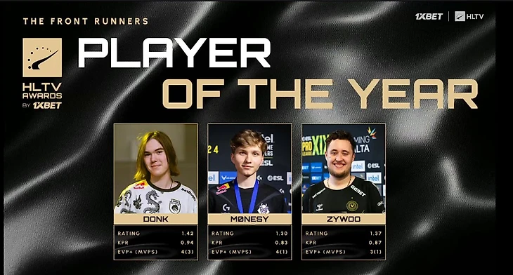 ● Потенциальные кандидаты в номинации «Игрок года» по итогам полугодия: Donk, M0nesy и Zywoo.