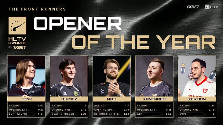 ● Пять кандидатов в номинации «Лучший энтри» по итогам полугодия: Donk, Flamez, Niko, Xantares, Xertion.