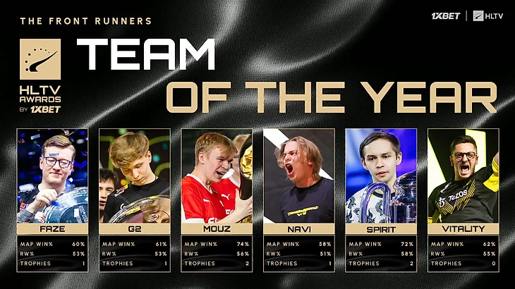 ● Шесть кандидатов в номинации «Команда года» по итогам полугодия: Faze, G2, Mouz, NAVI, Spirit, Vitality.