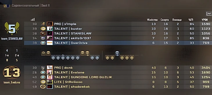 Вторая команда: S1mple, Overdrive, Buster, Skillz0r, Stanislaw.