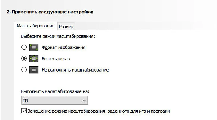 В разделе «Регулировка размера и положения рабочего стола» Донк ставит такие настройки.