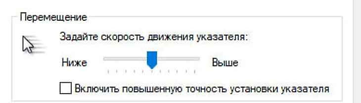 Затем зайдите в дополнительные параметры мыши и уберите галочку напротив «Включить повышенную точность установки указателя». Там же настраивается чувствительность – 6/11.