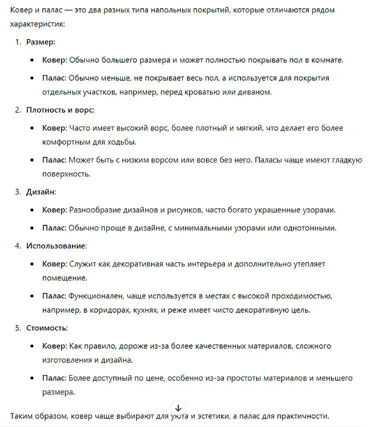 Если вы, как я, не знаете, чем конкретно отличаются палас и ковер, – читайте ответ ChatGpt.