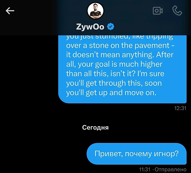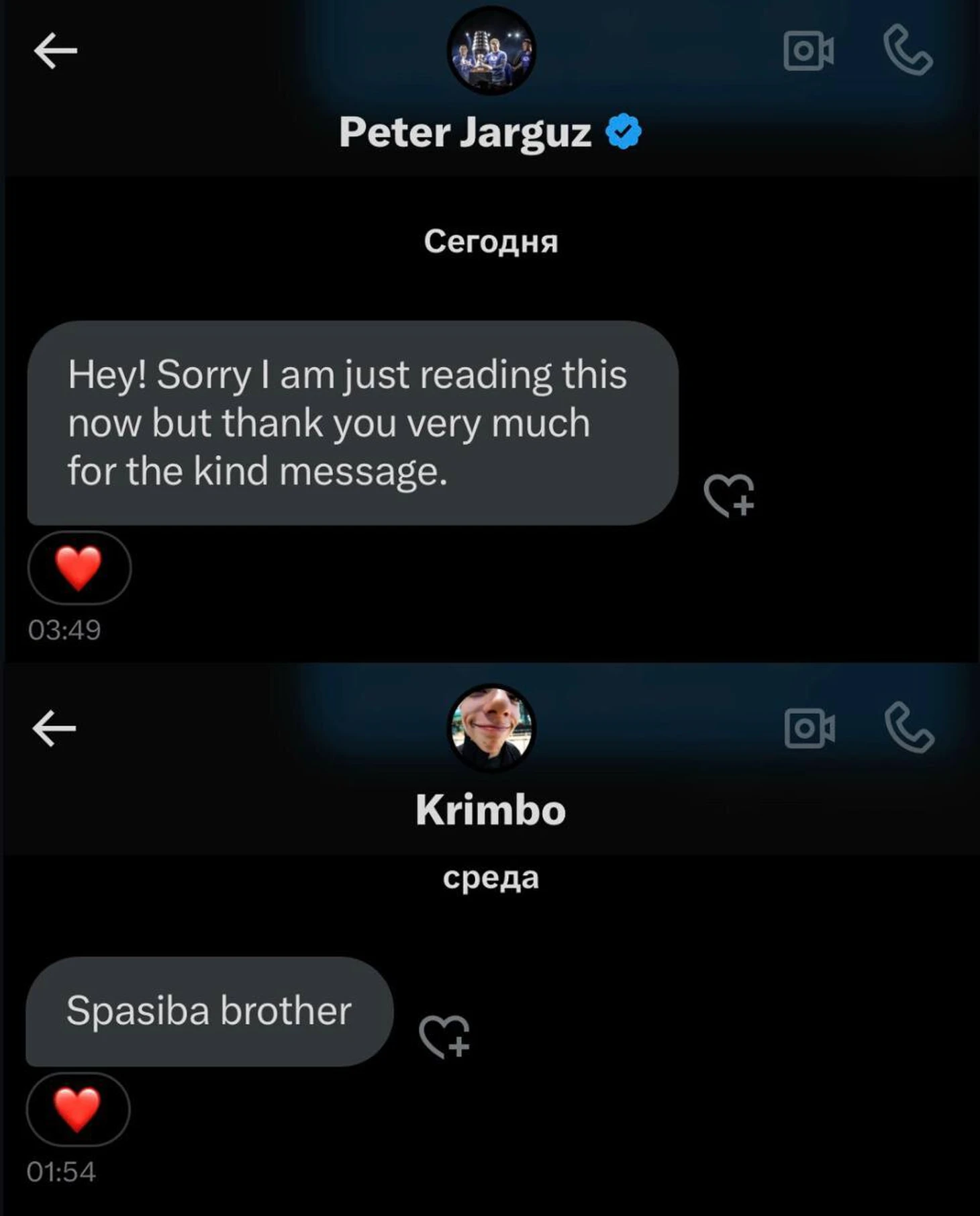 «Привет! Играл в ваши игры 10 лет. Несмотря на то, что вы больше не занимаетесь CS, хочу вас поддержать. Все еще будет. Как говорится: «Все в порядке, вы просто оступились, словно споткнулся о камень на мостовой. Это ничего не значит, ведь ваша цель намного выше всего этого, не так ли? Я уверен, вы это переживете, встанете, пойдете дальше и выпустите новый кейс». Успехов!»