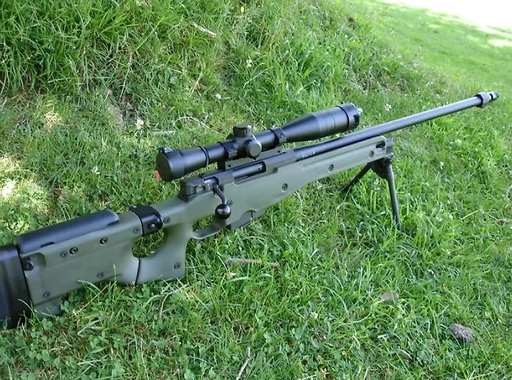 А вот дальше идентифицировать винтовку сложно: согласно описанию, она использует патрон .338 Lapua Magnum, что однозначно указывает на модель AWM.