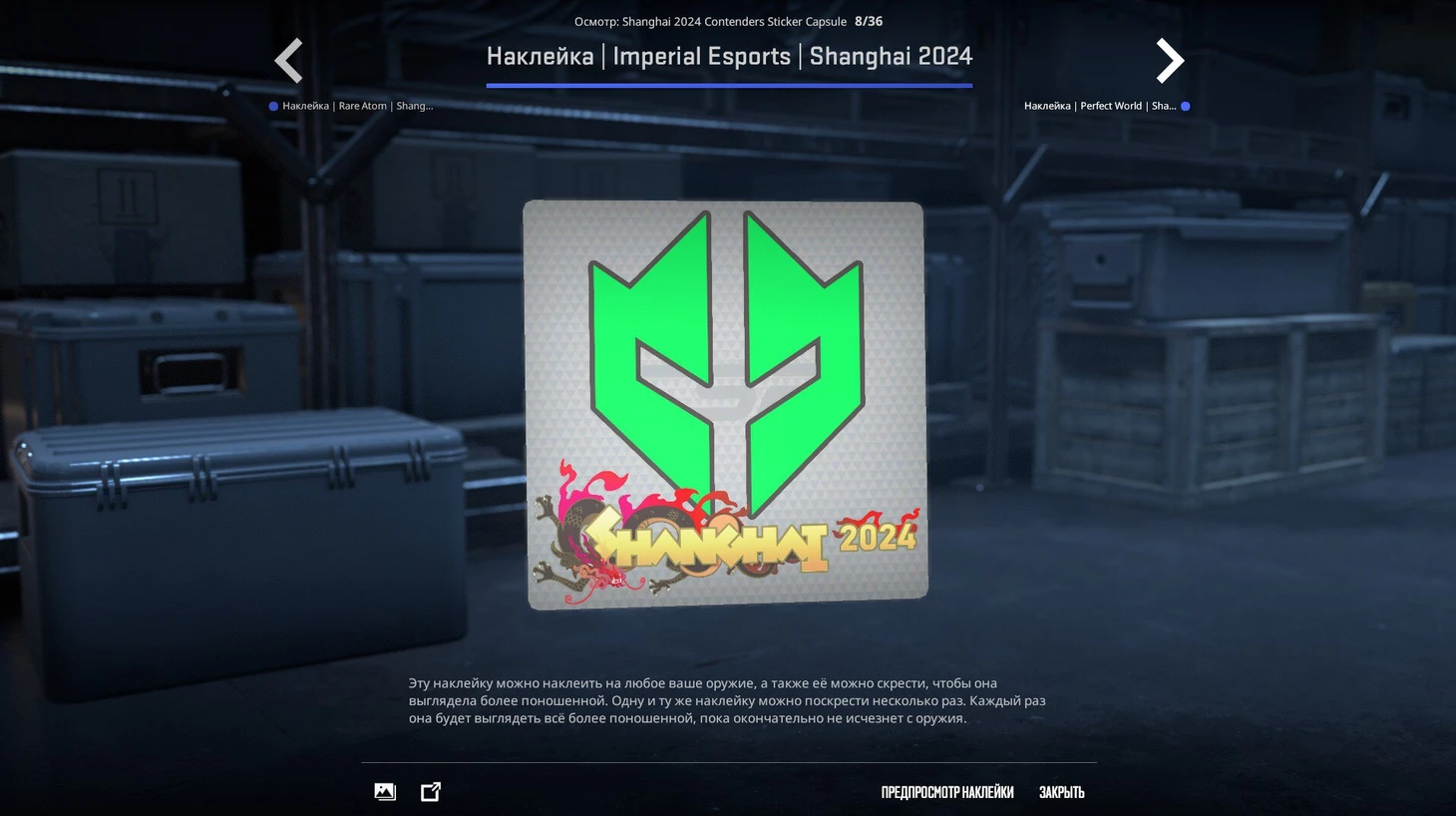 30 декабря стартует второй мейджор по CS 2 – Perfect World Shanghai Major 2024. Valve, как и всегда, добавитвнутриигровые предметы, среди которых будут наклейки всех 24 участников. Всего будет четыре капсулы: команд со стадий Opening, Elimination, Champions, а также отдельная капсула для победителя турнира, которая выйдет вскоре после финала.