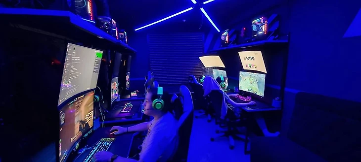 «Я сам построил бизнес-план, спроектировал помещение, создал эскиз в 3D и начал потихоньку готовиться к открытию. Технику и мебель вез в контейнерах из Москвы. Все было под заказ: кресла DXRacer, компьютеры от HyperPC – они мне сделали уникальные виниловые наклейки. Все укомплектовал, проверил каждую единицу. Параллельно начали делать ремонт. Здесь был старый магазин продуктовый, мы его разломали полностью и все заново сделали. Я вместе с женой делал. Пара людей помогала мне со шпаклевкой и укладкой пола, а остальное – вентиляцию, освещение, проводку – все сами».