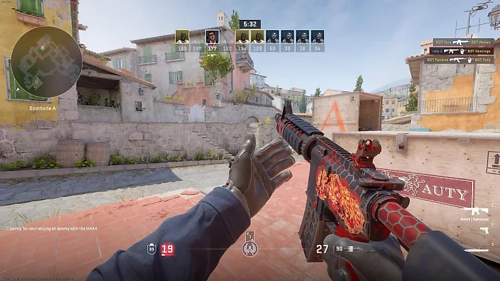 В CS:GO копии «Воя» выглядели очень грустно: стикеры можно было ставить лишь на определенные позиции, а наклеек огня было очень мало. Получалась вот такая пародия с дорогущим стикером «Вой».