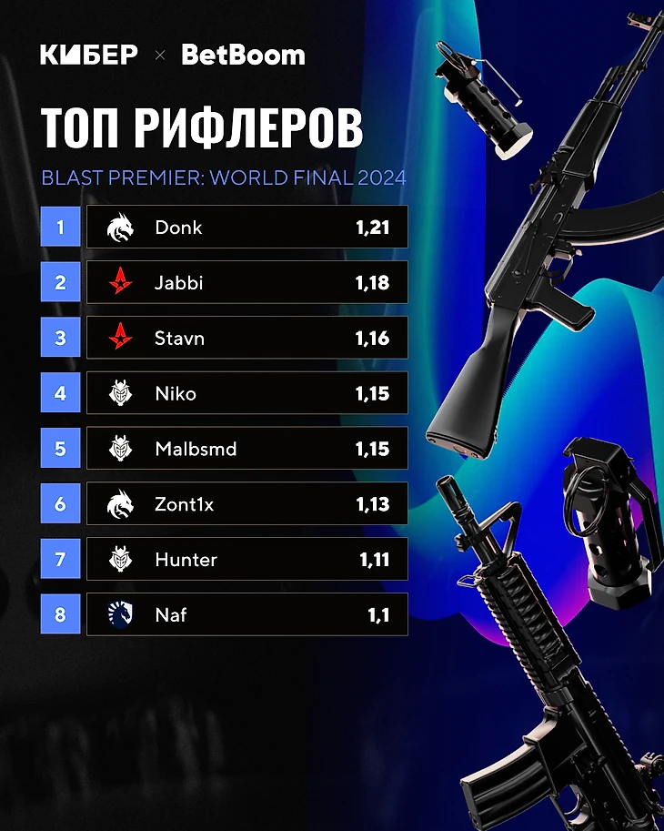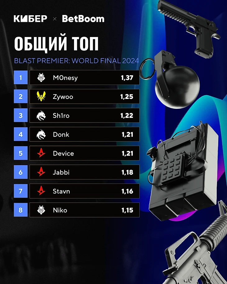 Рейтинг финального BLAST. M0nesy – лучший с отрывом, Donk лишь четвертый