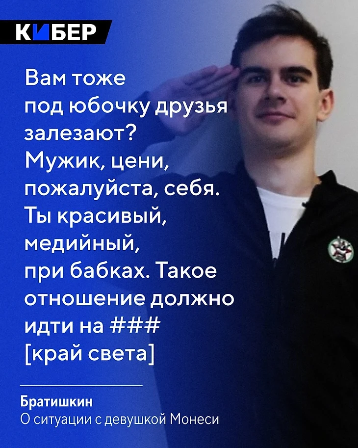 Братишкин: «Проснулся и ##### [офигел] от того, что пока кое-кто забирал турик, кое-кто ему изменил. Вот это рофл, который даже рофлом не назвать. А больше всего орнул с оправданий этого чипса, мол: «Это дружеские приколы». Вам тоже под юбочку друзья залезают?