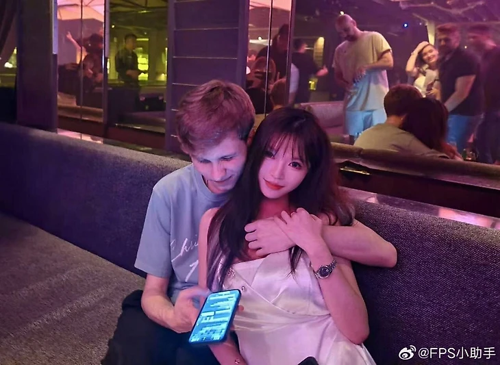 На ней Монеси сидит в компании китайской стримерши. Девушка не знает английского, поэтому они общаются с помощью переводчика на телефоне.