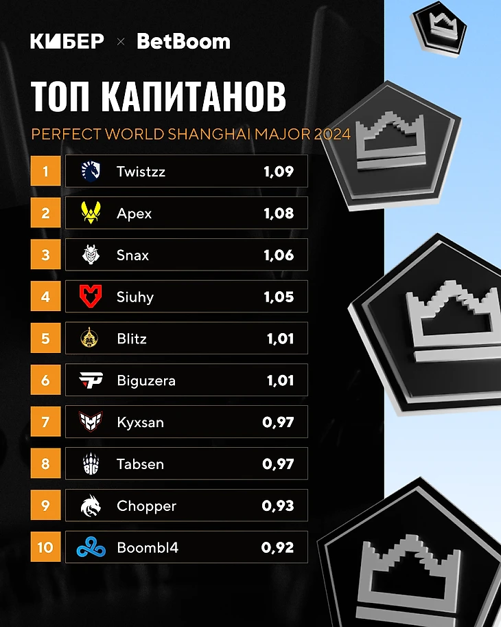 Примечание: снайперы-капитаны не учитываются в топе капитанов.