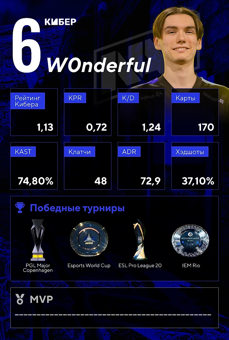 Мы подготовили топ-10 лучших игроков 2024 года. Как и в прошлом году, основным показателем был рейтинг Кибера, но также учитывалось мнение редакции, результаты на турнирах и общая статистика за год.