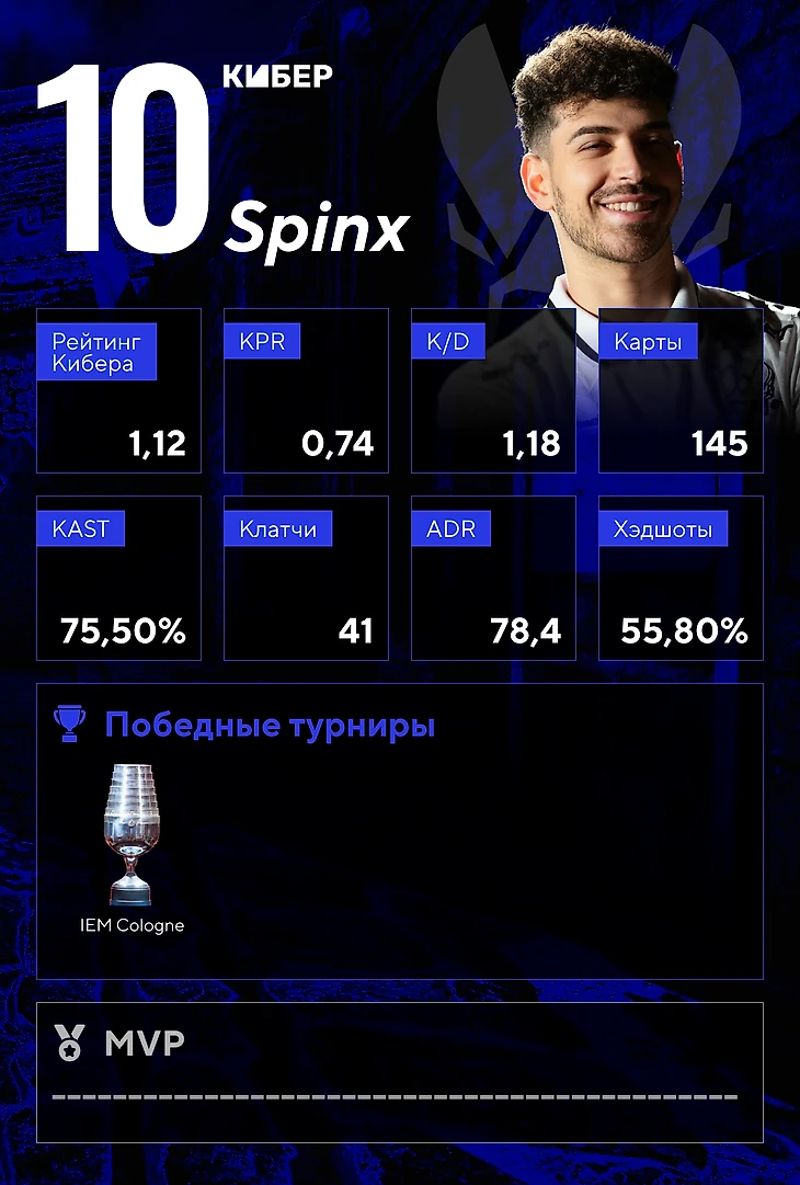 Spinx попадает в десятку лучших второй год подряд. Но если в 2023-м он был шестым, то сейчас зацепился лишь за последнюю строчку рейтинга. Статистика Лотана практически не изменилась, разве что есть небольшая просадка с 1,13 до 1,12.