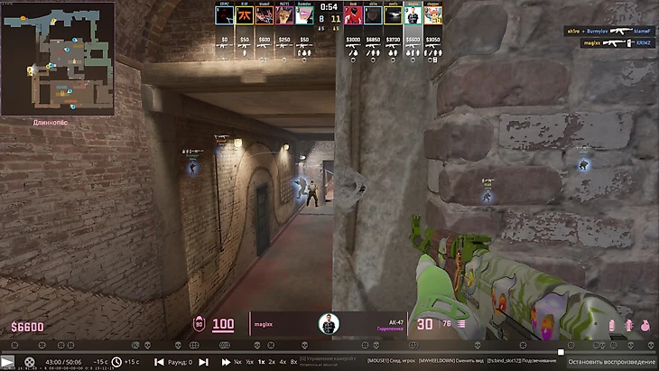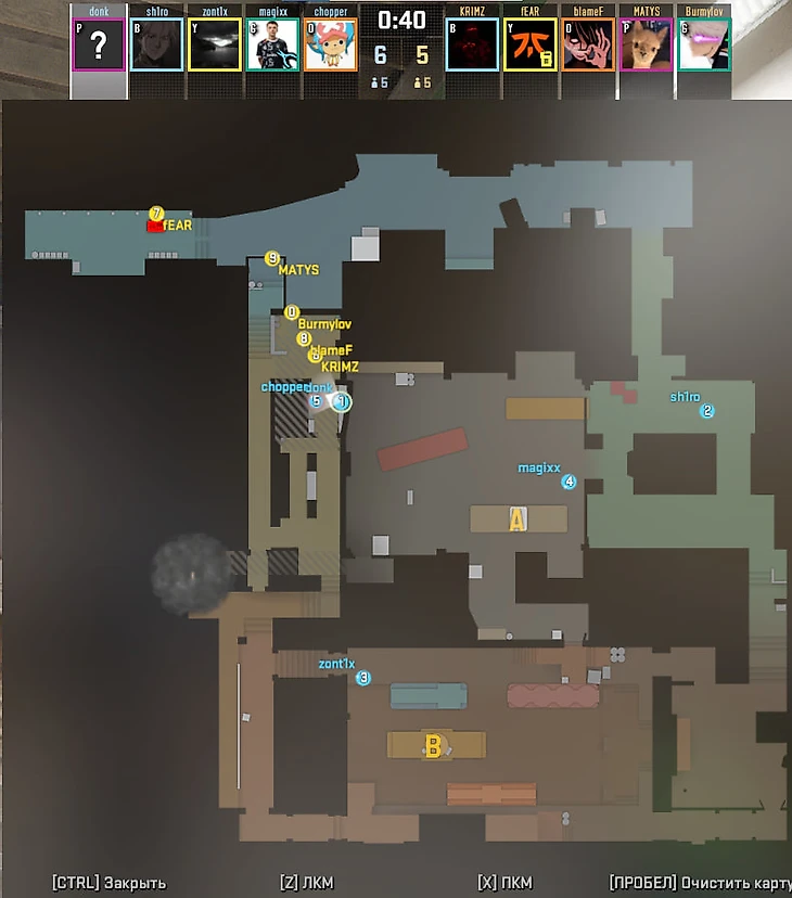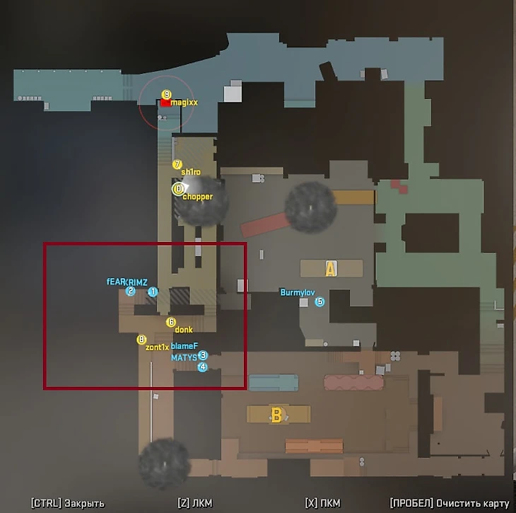 За атаку Донк тоже частенько ходил в верх-низ. Там он с тиммейтами (то с Широ, то с Мэджиксом) разыгрывал комбинацию – простейшую, но карте пара месяцев, так что тут все в новинку. Даня подходил близко к выходу и упирался в стену, чтобы его не ослепила потенциальная флэшка, а тиммейт стоял поодаль и ждал пуша от соперника.